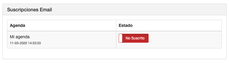 Cuando editas un contacto desde el portal puedes cancelar la suscripción o suscribir a tus agendas de forma manual.
