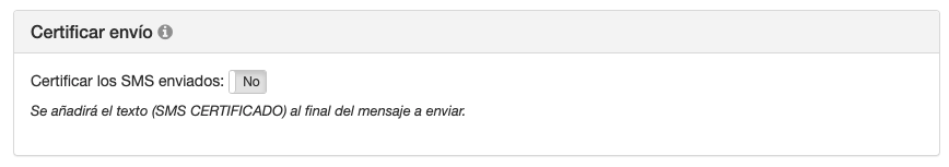 Puedes certificar cualquier envío de SMS o email dirigiéndote a cualquier aplicación de envío y marcando "Sí" en la opción de certificar envío.