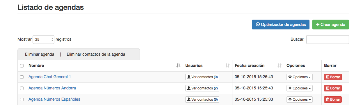 Para optimizar tus agendas, dírigete al Listado de Agendas y pulsa el botón de Optimizar Agendas.