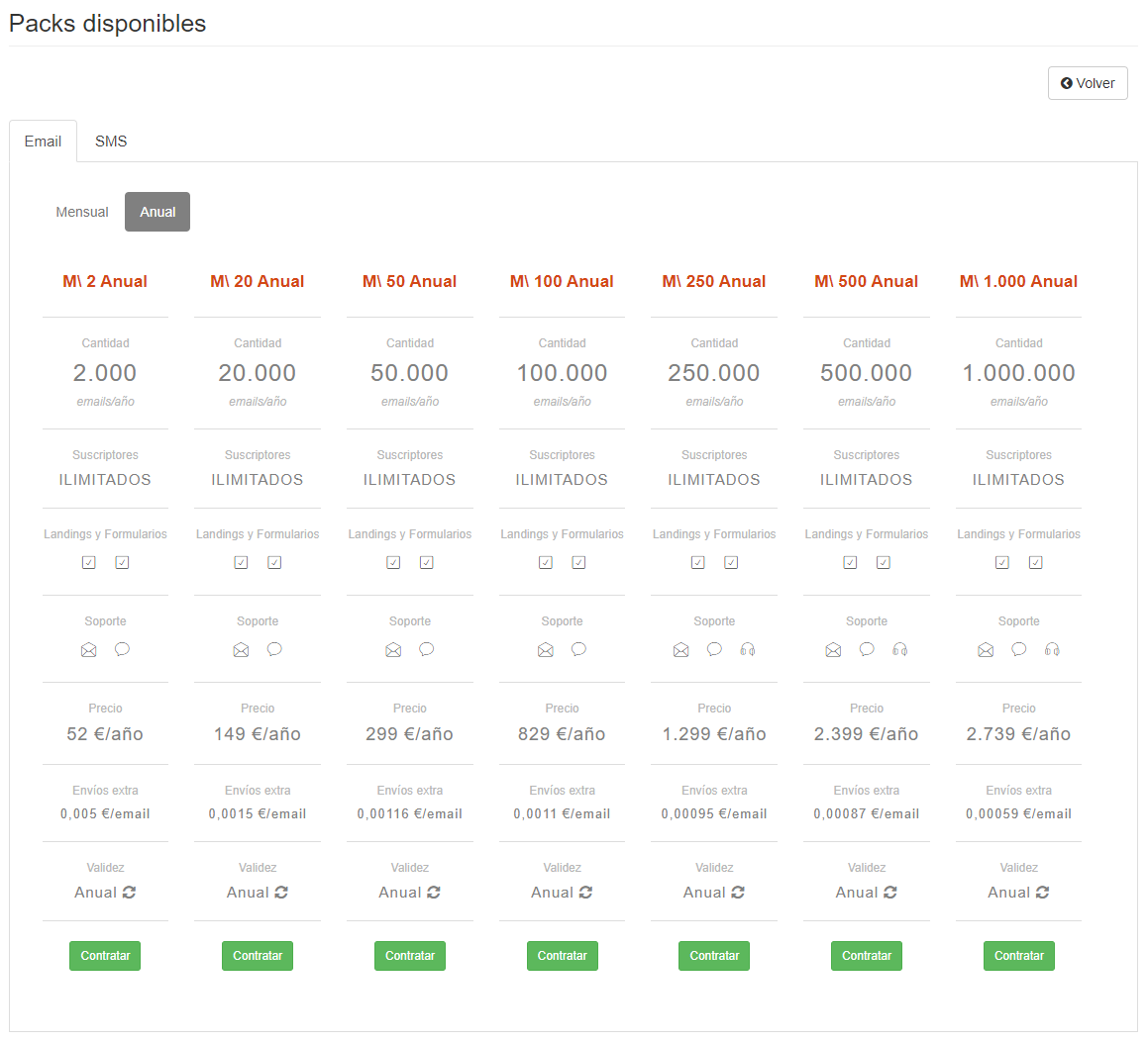 En este listado encontrarás todos los packs disponibles que te ofrecemos para que puedas contratar el que más te convenga según tus necesidades.